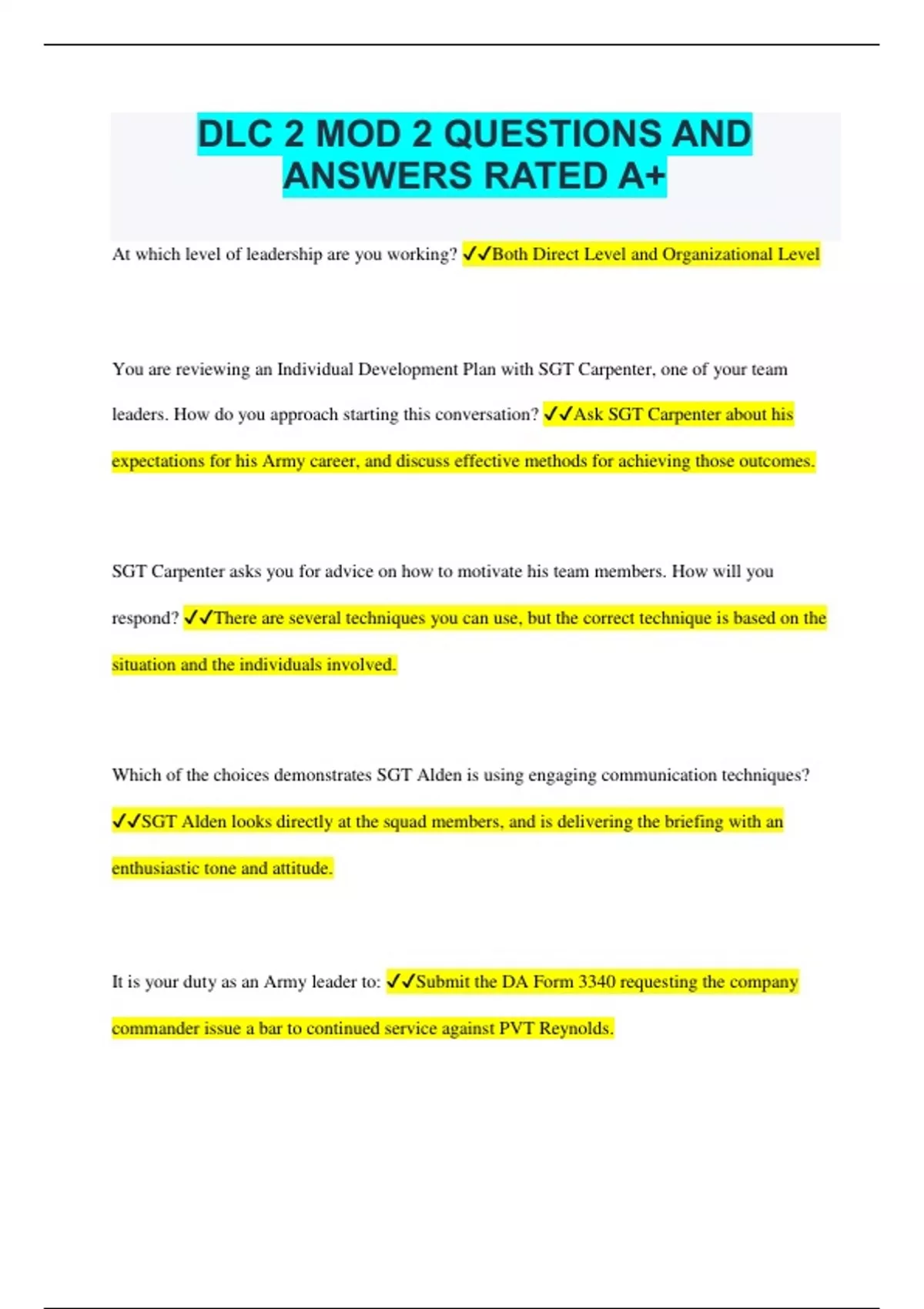 DLC 2 MOD 2 QUESTIONS AND ANSWERS RATED A+ - DLC 2 MOD 2 - Stuvia US