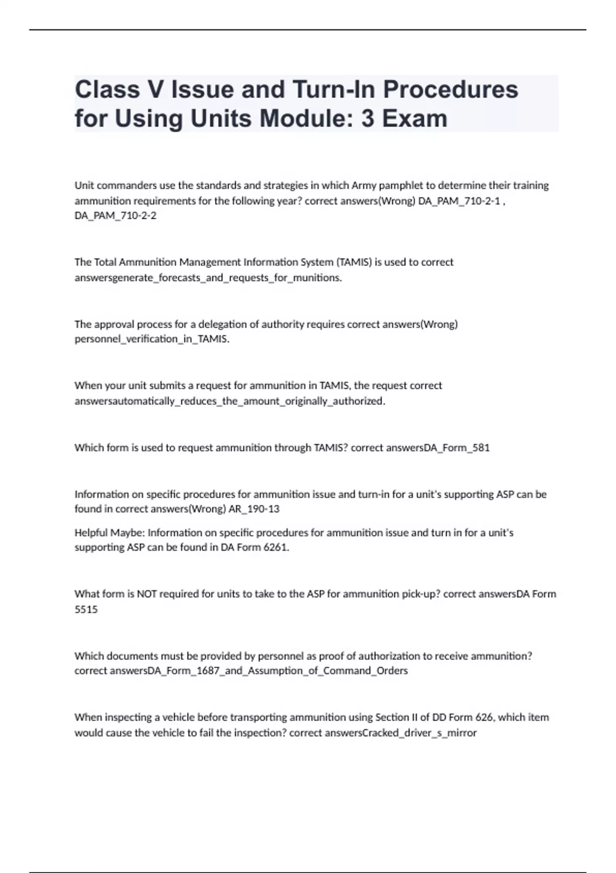 Class V Issue and Turn-In Procedures for Using Units Module: 3 Exam 2024 with 100% correct answers - Class V Issue and Turn-In Procedures for Using Uni - Stuvia US